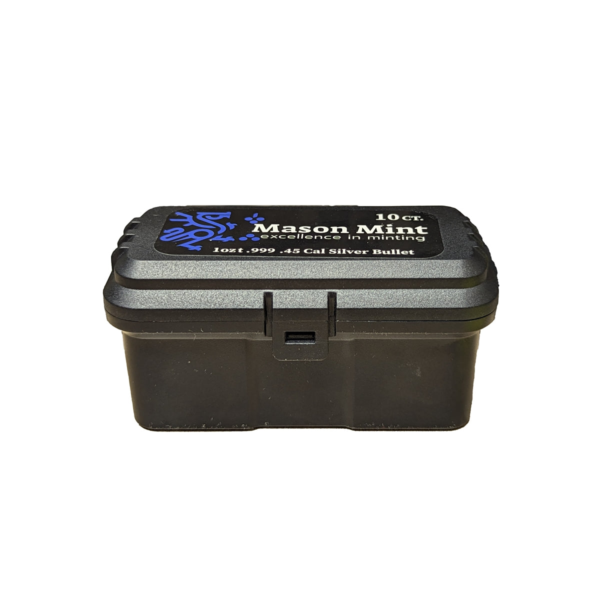 10 Pack of 1 Troy Ounce .45 ACP Bullet .999 Silver Bullet Round in Custom Hard Case