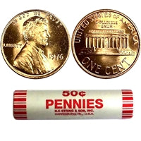 - One unsearched 50-coin roll of Gem Brilliant Uncirculated 1976 Lincoln Cents.