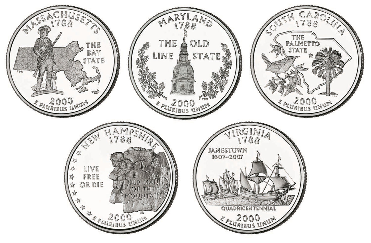 - All 5 of the BU Statehood Quarters issued in 2000: Massachusettes, Maryland, South Carolina, New Hampshire, Virginia.