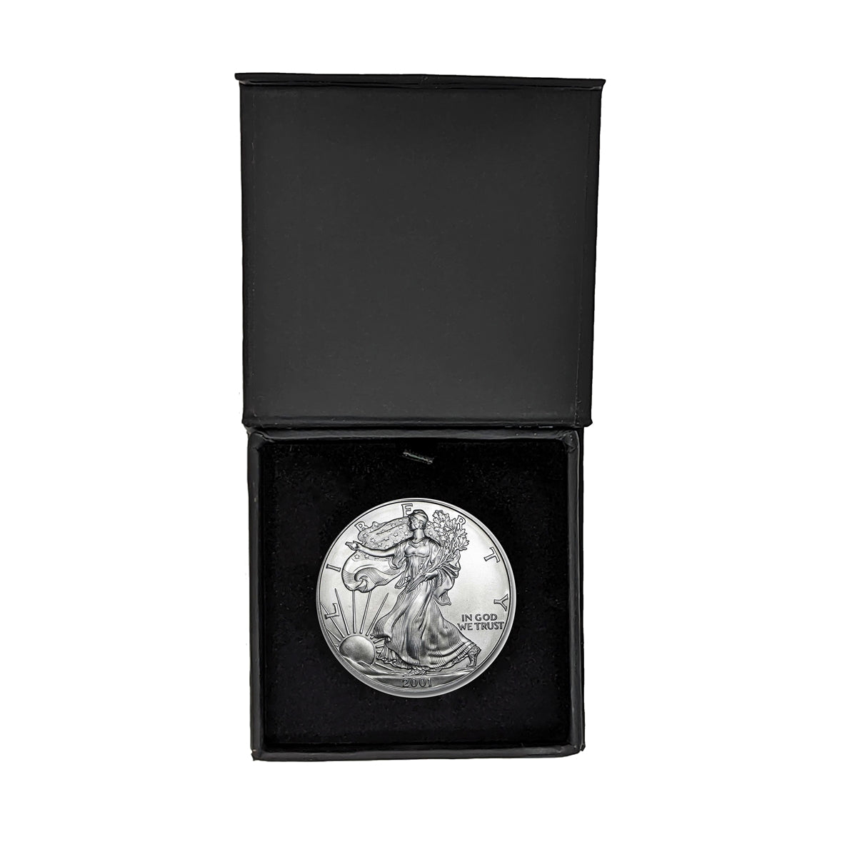 2001 U.S. Silver Eagle in Plastic Air Tite in Magnet Close Black Gift Box - Gem Brilliant Uncirculated