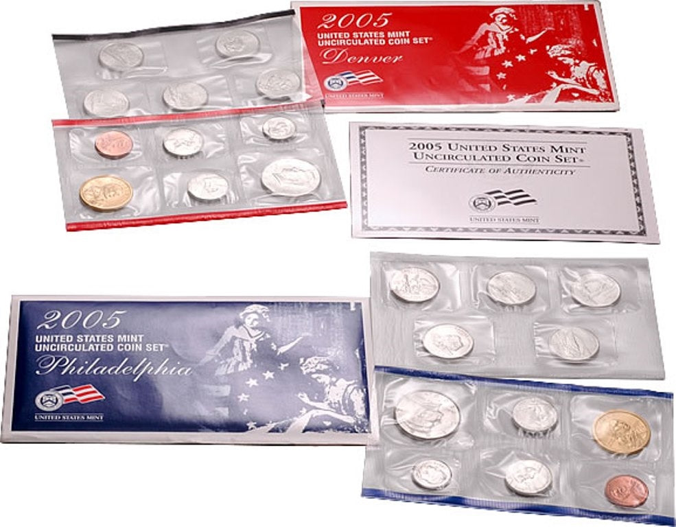 Two envelope set containing 22 uncirculated coins packaged by the U.S. Mint. - Set includes a complete set of all coins issued from the Philadelphia Mint ("P" mint mark) and Denver Mint ("D" mint mark).