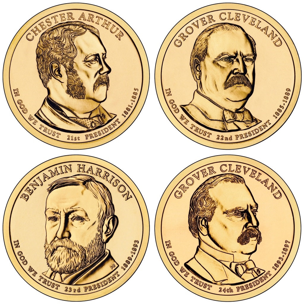 Contains 8 Uncirculated 2012 dollars, one from Each Mint: dollars: Arthur, Cleveland 1st, Harrison, Cleveland 2nd. - "P" mint mark coins are from the Philadelphia Mint.