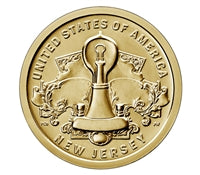 inscriptions are “UNITED STATES OF AMERICA” and “NEW JERSEY.” - The fourth coin of the American Innovations Dollar coin program.