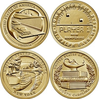 the development of the state as well as the Nation. - The North Carolina $1 Coin design features a stack of three textbooks with