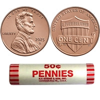 - One unsearched 50-coin roll of Gem Brilliant Uncirculated 2025 Lincoln Cents.