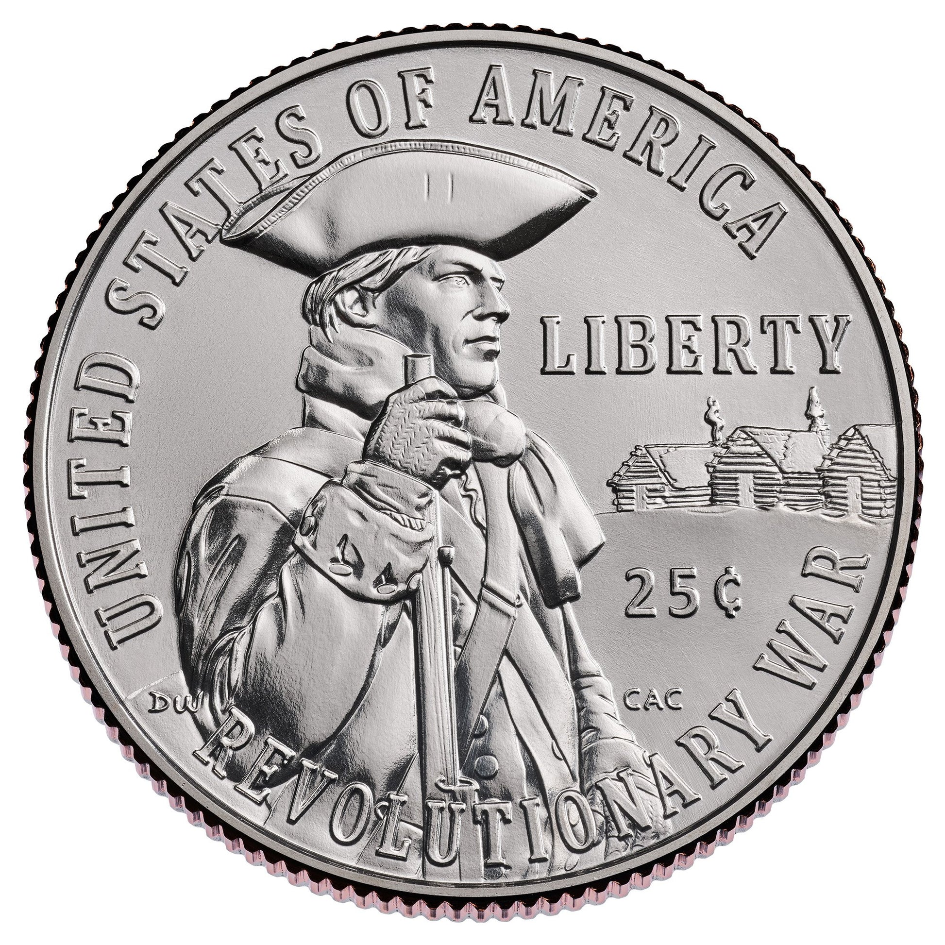 Reverse (Tails): The reverse depicts a powerful scene honoring the Revolutionary War and the brave patriots who fought for American independence. The imagery captures the spirit of sacrifice, determination, and unity that defined the Continental Army and the broader revolutionary movement from 1775 to 1783. Inscriptions include "UNITED STATES OF AMERICA," "E PLURIBUS UNUM," "REVOLUTIONARY WAR," and "25¢."