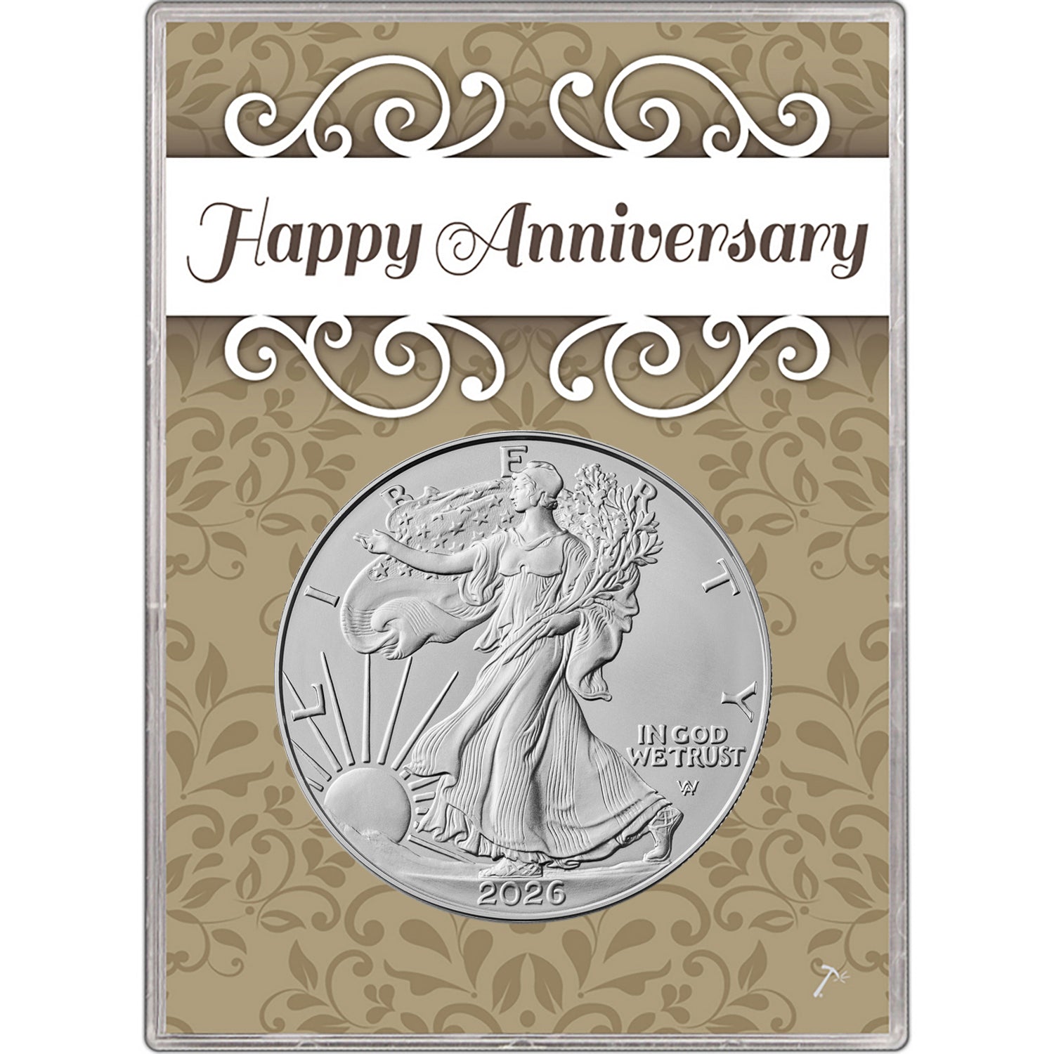 Presale! 2026 U.S. Silver Eagle in Happy Anniversary Holder - Gem Brilliant Uncirculated